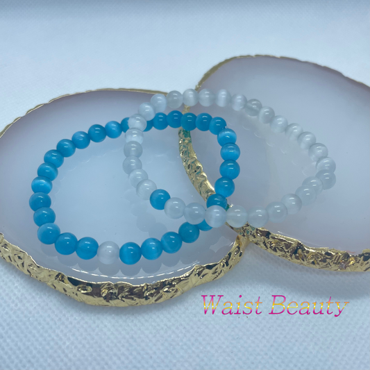 White&Blue Cat's Eye Opal Bracelets 2pc
