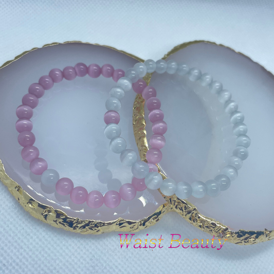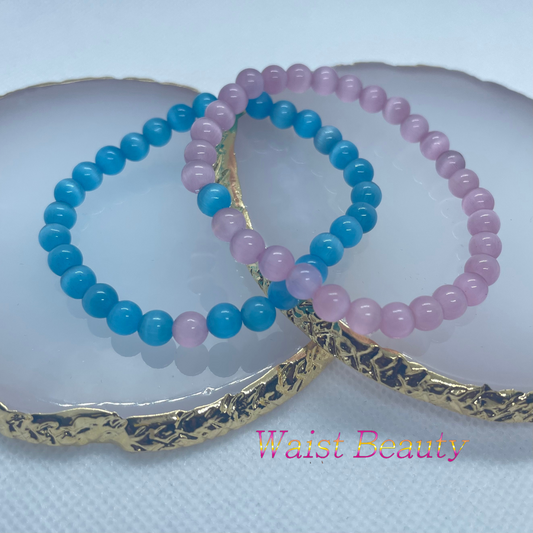 Blue&Pink Cat's Eye Opal Bracelet 2pc